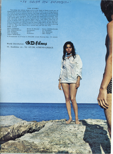 | Παραγωγή | 1973 | | Φωτογραφία | ΑΡΗΣ ΣΤΑΥΡΟΥ | Περίληψη | Δύο φτωχοί νεαροί ο Χάρης και ο Δημήτρης, έρχονται στη Ρόδο για να δουλέψουν, στην προσπάθεια τους να βγάλουν το φίλο τους τον Μάριο από την φυλακή.