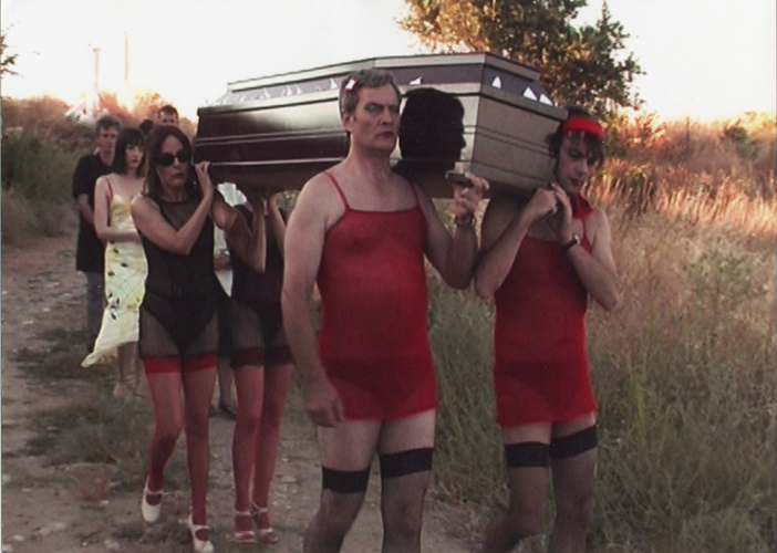 | Παραγωγή | | | Φωτογραφία | | Περίληψη | Ο πλούσιος, ιδιόρρυθμος γέρος (Ανδρέας Βουτσινάς), αφήνει στο φίλο του συμβολαιογράφο (Σπύρος Φωκάς) μια παράξενη διαθήκη. Να θαφτεί με θέα τη θάλασσα, να παίζουν γύφτοι και το φέρετρό του να το σηκώνουν τέσσερις κοπέλες ντυμένες αλά Μουλέν Ρουζ . Σε αντίθετη περίπτωση την τεράστια περιουσία κληρονομεί η εκκλησία υπέρ νόθων και εξωγάμων.